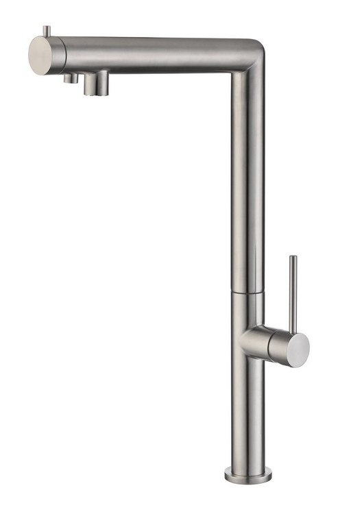 این شیر آشپزخانه مدرن و لوکس، با طراحی و دو خروجی (آب لولهکشی و تصفیهشده)، نمایی بینالمللی به آشپزخانههای شما میآورد. بدنه از آلیاژ برنج مقاوم ساخته شده و پوشش کروم، آن ظاهر نفیسی را به ارمغان میآورد.. این طراحی، عملکرد روزمره را راحتتر و بهداشتیتر میکند.