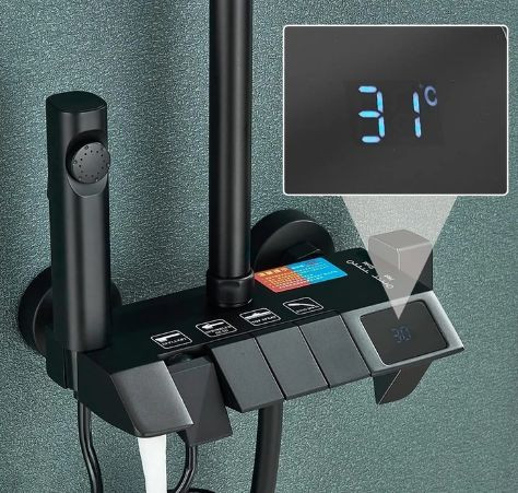 دوش پیانویی نمایشگر دار این ست با پاشش یکنواخت و فشار مناسب، تجربه دوش روزانه را دلپذیر میکند. شیر توالت سرد و گرم نیز با طراحی استاندارد، مقاوم و کممصرف، یک انتخاب عالی برای سرویس بهداشتی است.